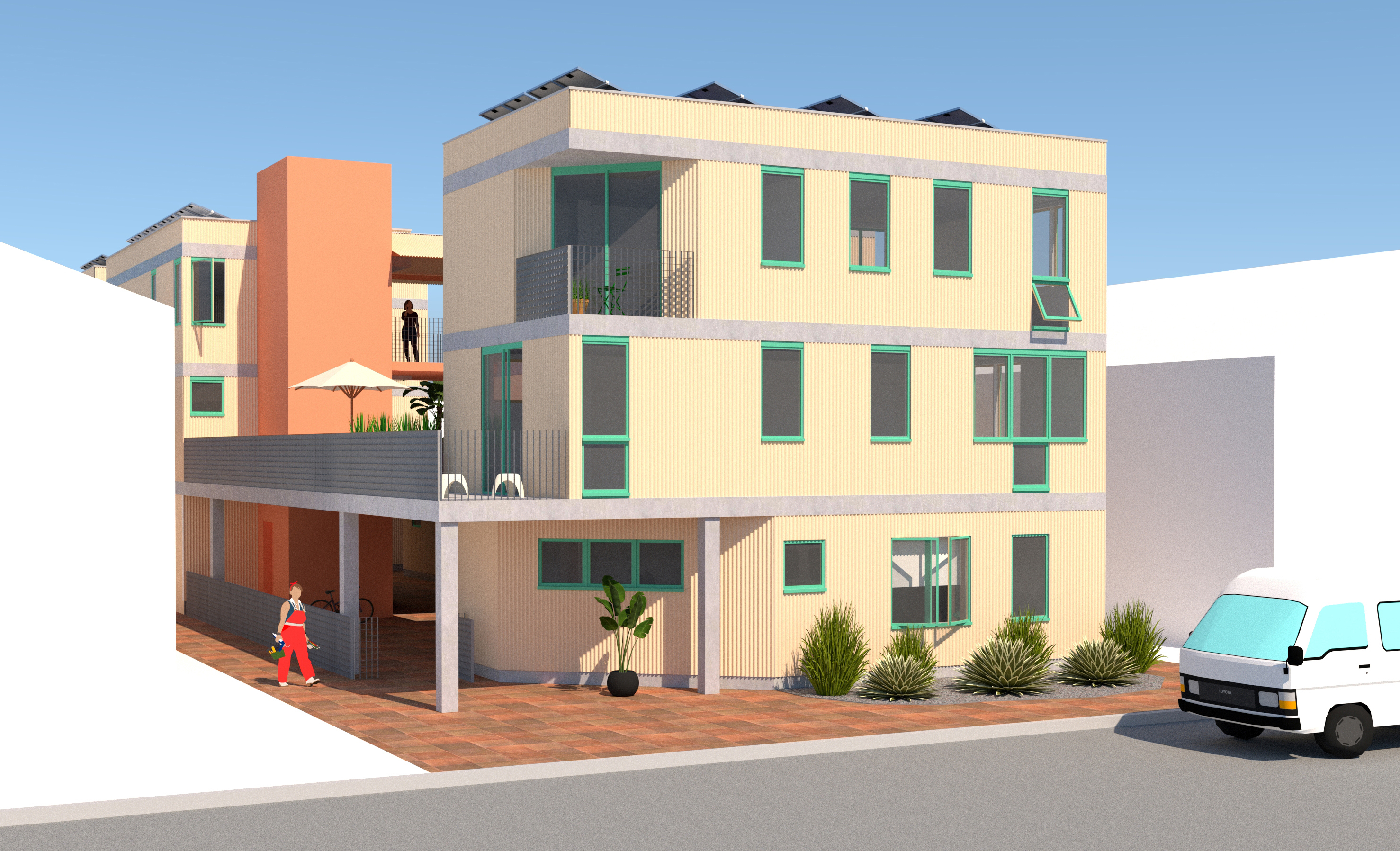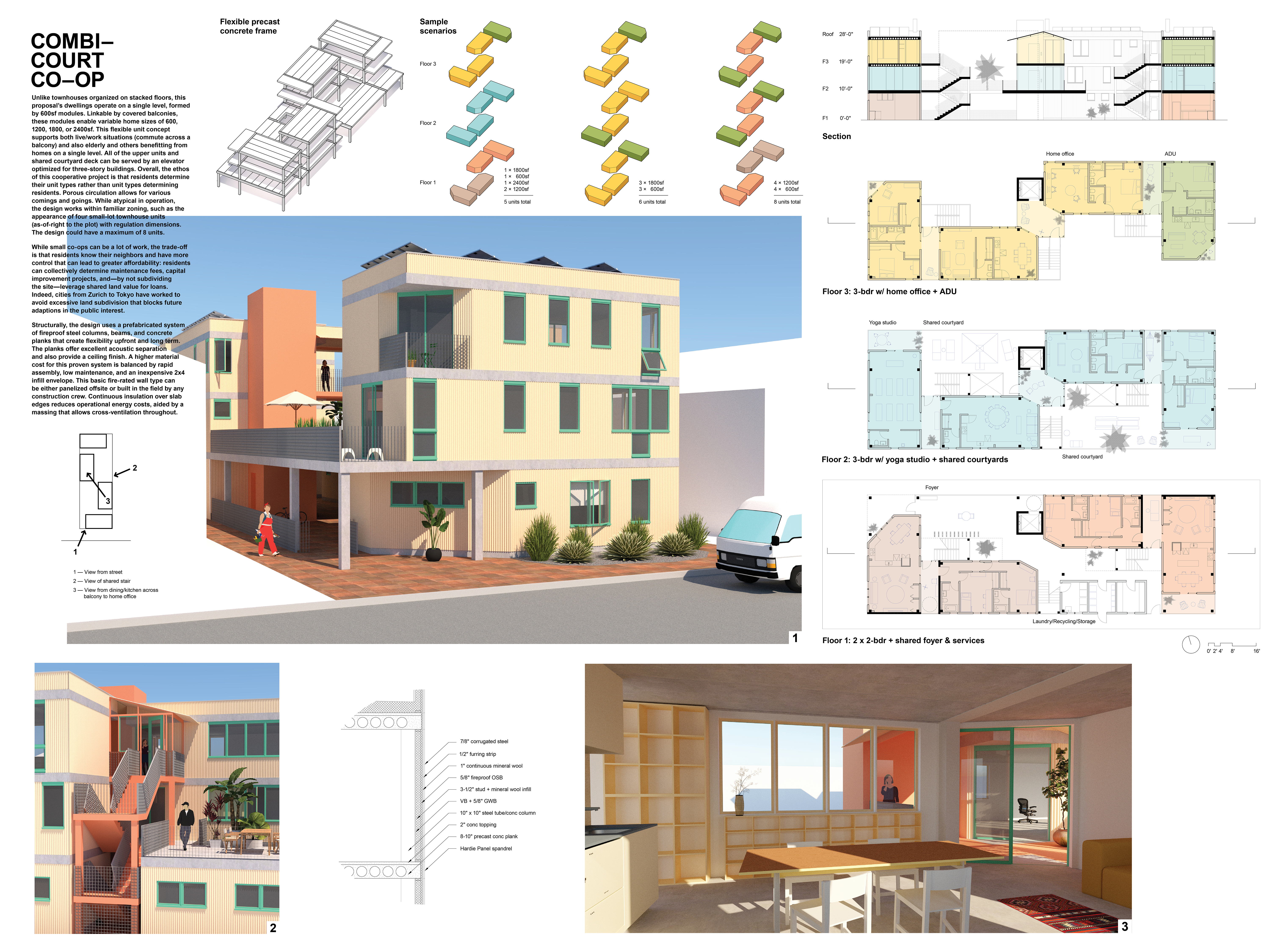 The Combi-Court Co-op is a proposal for the Small Lots/Big Impacts housing competition, sponsored by CityLAB UCLA.
