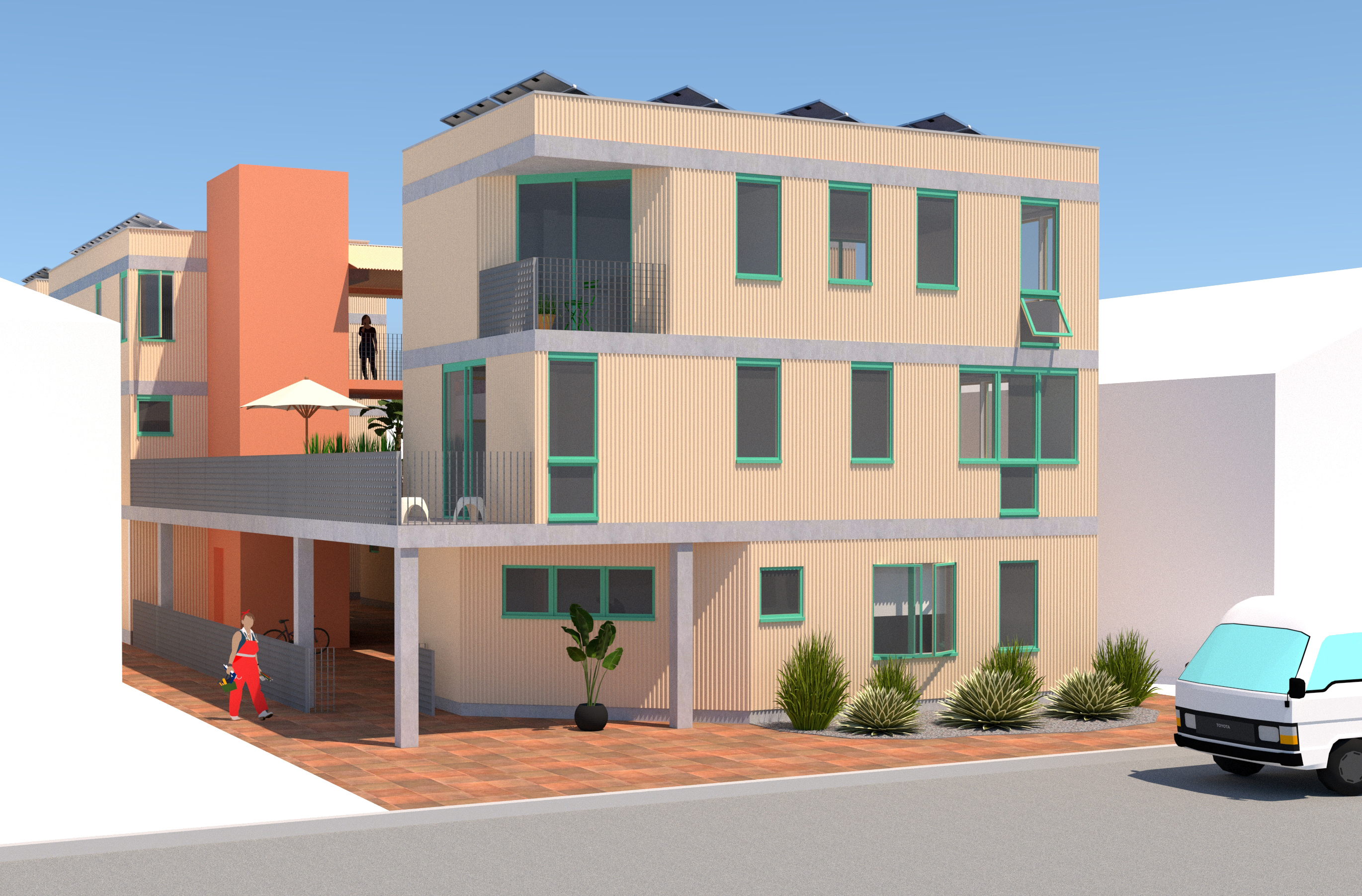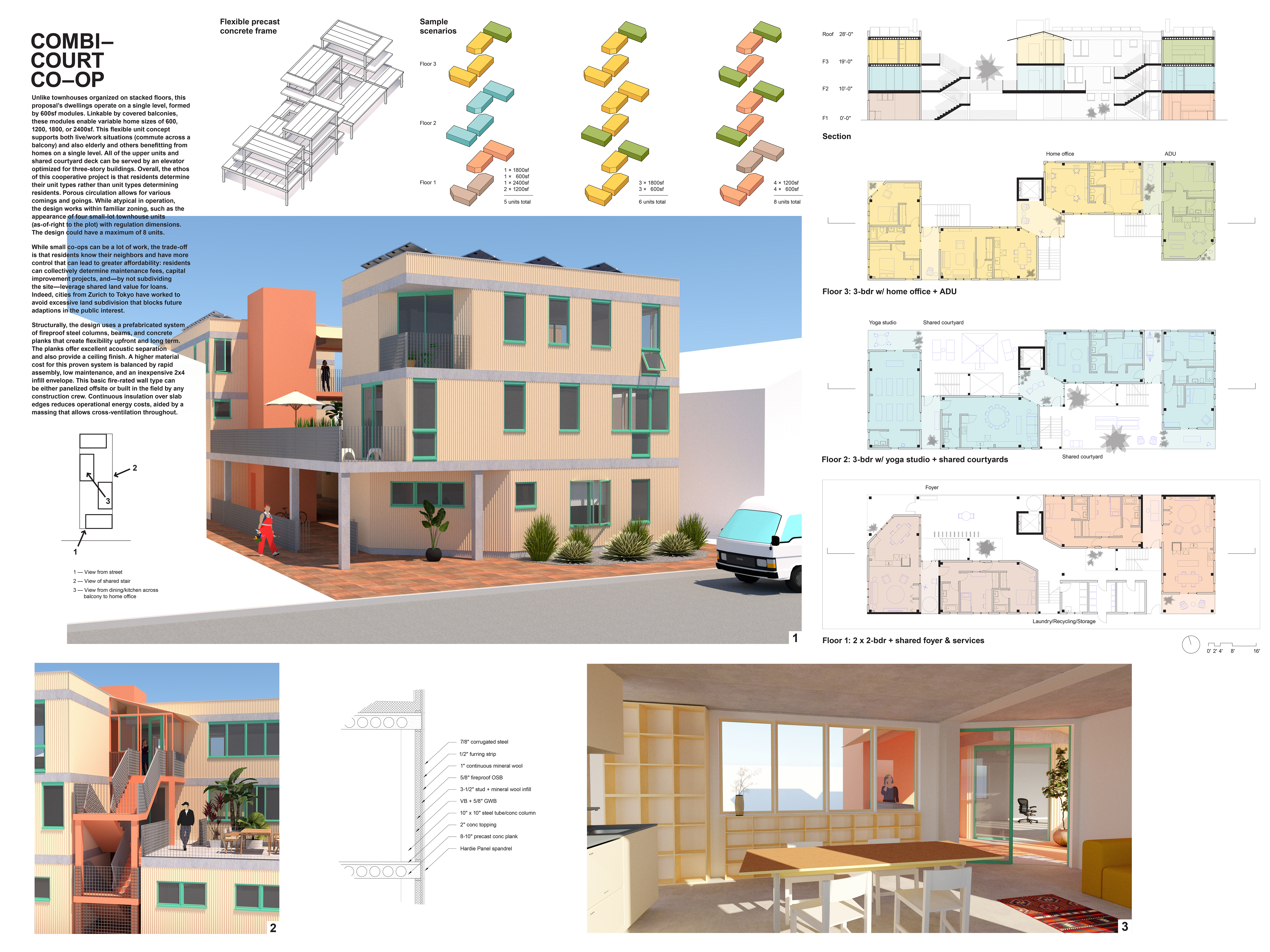 The Combi-Court Co-op is a proposal for the Small Lots/Big Impacts housing competition, sponsored by CityLAB UCLA.